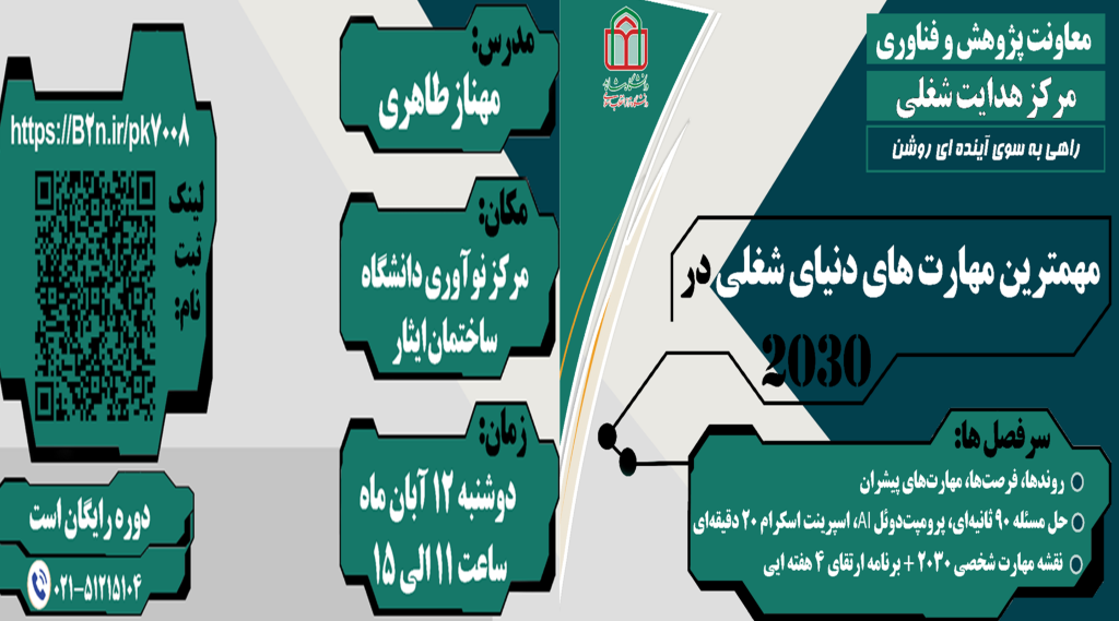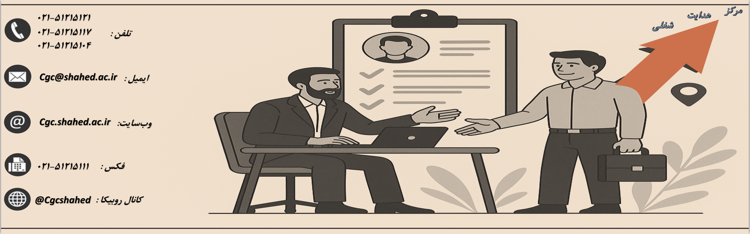 پاور بنر های افقیSlide1پاور پوستر سایتهدایت شغلی (1)هدایت شغلی (1) اخبار و اطلاعیهها آرشیو اخبار و اطلاعیهها گزارش برگزاری دورهها و کارگاههای مهارتافزایی در دانشگاه شاهد آبان 17, 1404 | اخبار مدیریت فناوری برگزاری «مهمترین مهارتهای دنیای شغلی در 2030» آبان 11, 1404 | اخبار مدیریت فناوری دوره شخصیت شناسی شغلی آبان 5, 1404 | اخبار مدیریت فناوری برگزاری جلسه مشترک مدیریت امور فناوری و تحقیقات کاربردی دانشگاه شاهد و شرکت قشم ولتاژ با محوریت برق قدرت و هوش مصنوعی آبان 3, 1404 | اخبار مدیریت فناوری 1 2 3 … 12 بعدی » تفاهم نامه های همکاری علمی توانمندسازی کاربردی 0+قراردادهای پژوهشی 0مبلغ قراردادها (میلیارد ریال) 0+تعداد اختراع 0مبلغ وصولی (میلیارد ریال) 0+تعداد ارزیابی اختراع 0واحدهای فناور مستقر در مرکز رشد